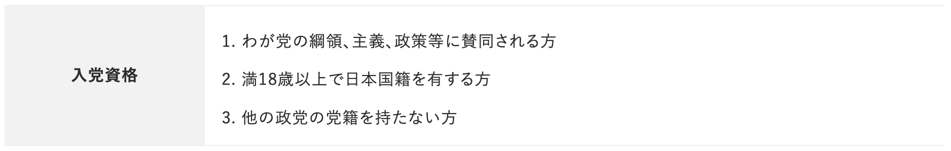 - 党費:一般党員 年額4,000円、家族党員 年額2,000円、特別党員 年額20,000円以上